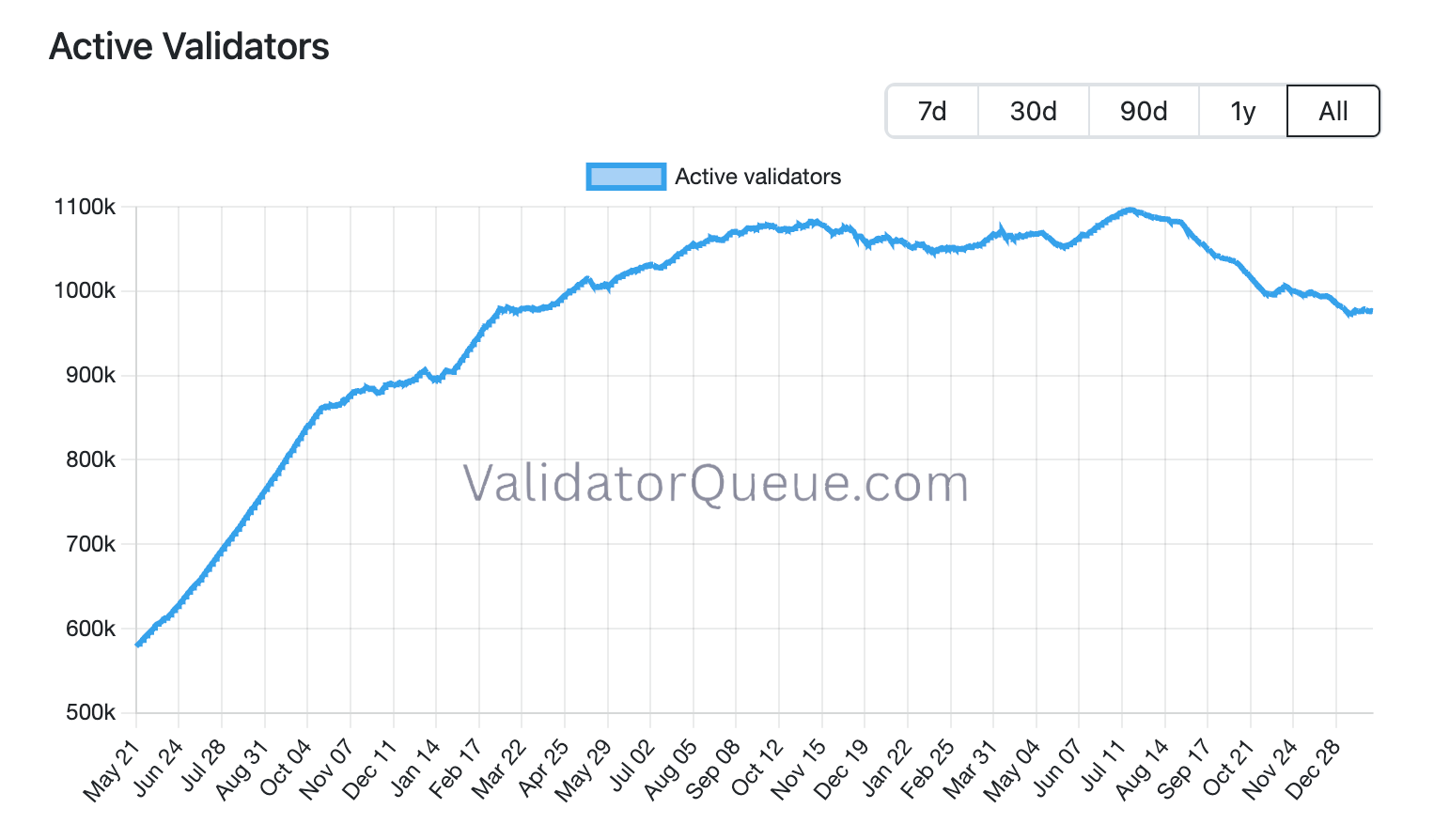 While the Ethereum validator entry queue has reached an all-time high, the total number of active validators has recently plateaued and is now slightly declining. This shift does not indicate weakening demand for staking, but rather reflects intentional protocol-level changes to validator growth.