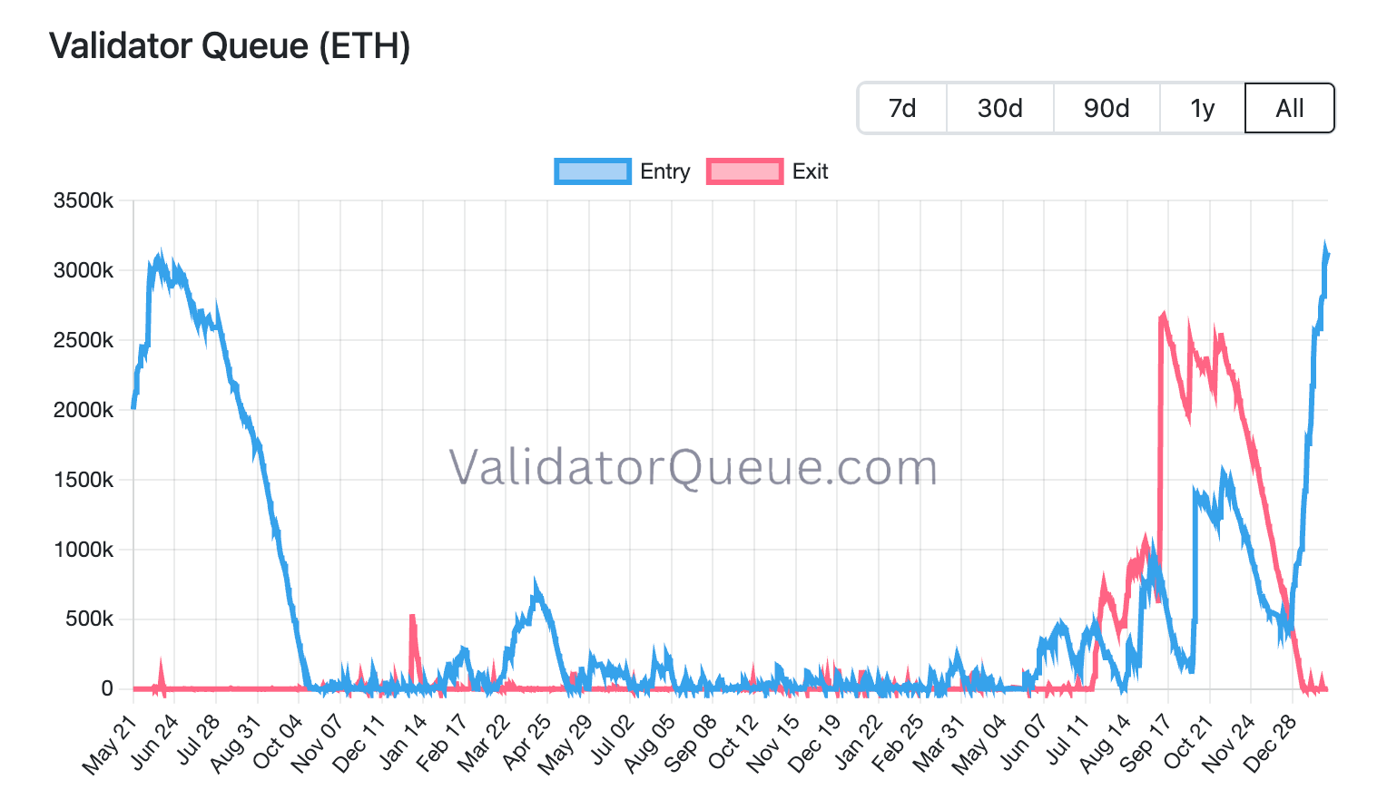 The current surge in the entry queue simply reflects demand outpacing the protocol’s fixed activation throughput.