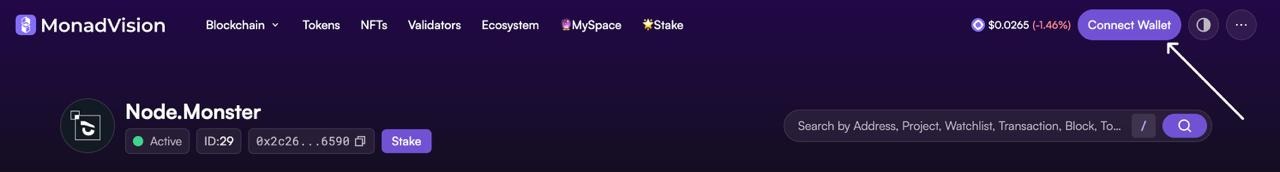 - Head to Node.Monster’s MonadVision page- https://monadvision.com/validator/0x2c2689Cac7E65b186f29e87DdC4C3ec6EDDc6590